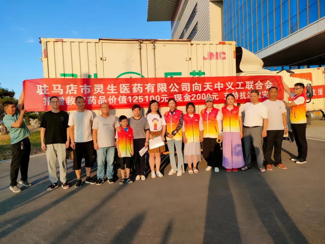 駐馬店市靈生醫(yī)藥有限公司攜手廠家向天中義工聯(lián)合會(huì)捐贈(zèng)藥品及現(xiàn)金支持抗洪救災(zāi)